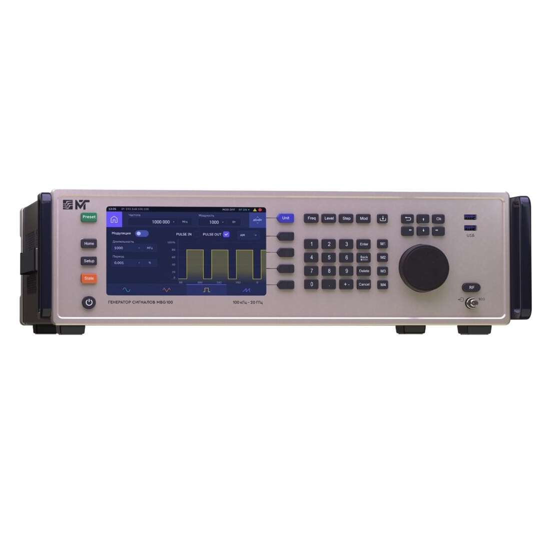 - Интерфейсы: Управление МИГ Трейдинг MBG100 осуществляется через стандартные промышленные интерфейсы, такие как Ethernet и SCPI-совместимость.
