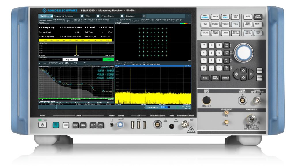 Измерительный приемник R&S FSMR3026 с диапазоном до 26,5 ГГц. Предназначен для прецизионного тестирования 5G, СВЧ-компонентов и ЭМС. Обладает высокой точностью (<0,4 дБ) и функциями анализа векторных сигналов для сложных измерений.