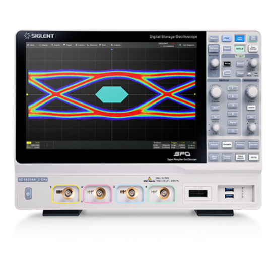 Осциллограф SIGLENT SDS6204A с полосой пропускания 2 ГГц и 4 аналоговыми каналами. Частота дискретизации 10 Гвыб/с, объем памяти 500 Мточек. Идеален для анализа высокоскоростных цифровых сигналов.