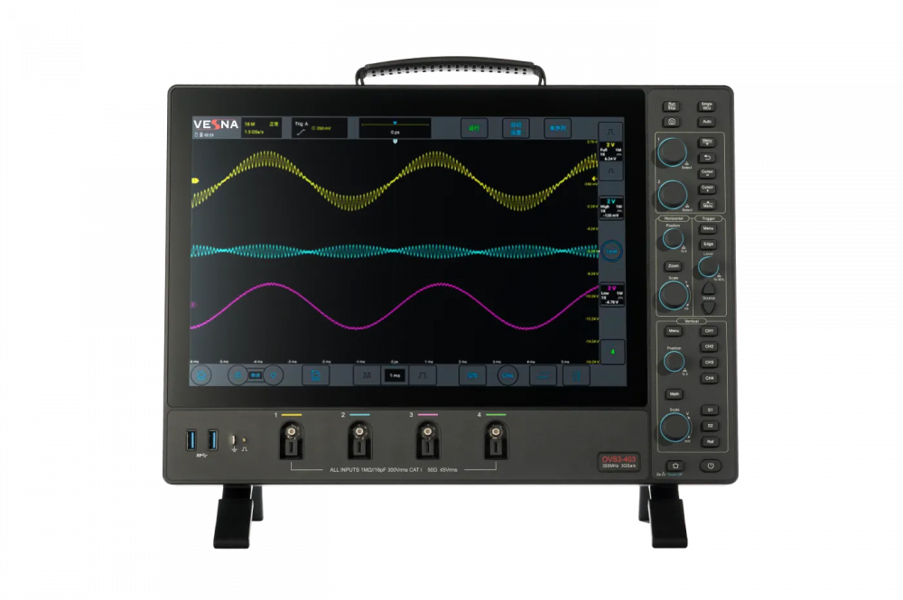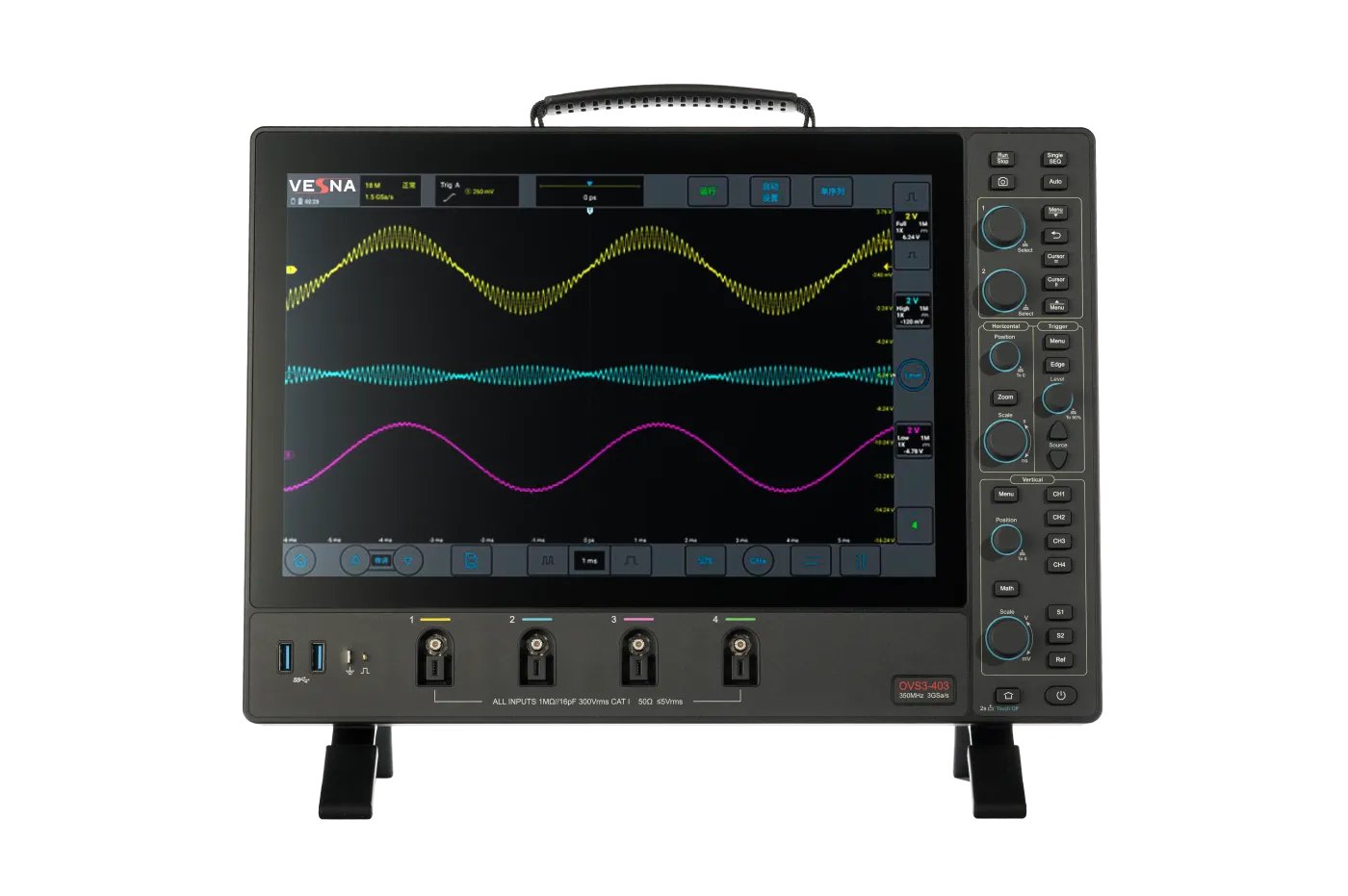 OVS3-405 — это топовая модель в серии 4-канальных цифровых осциллографов (DSO) Vesna OVS3-405, позиционируемая как высокопроизводительное лабораторное средство измерений. Осциллограф лабораторный Vesna OVS3-405 разработан для инженеров-разработчиков, занимающихся отладкой высокоскоростных схем, где критически важна как широкая полоса пропускания, так и повышенное вертикальное разрешение. Модель OVS3-405 отличается от конкурентов использованием собственного 12-разрядного Аналого-цифрового преобразователя (АЦП), что обеспечивает превосходное качество измерений благодаря минимальному уровню собственных шумов и надежному захвату сигналов с незначительной амплитудой.